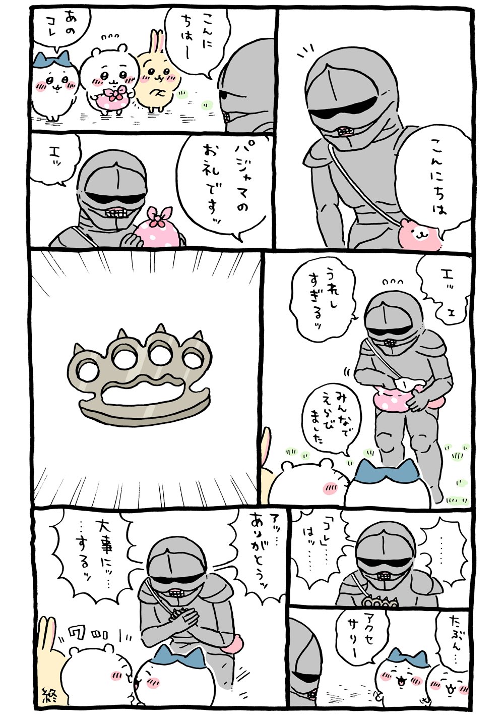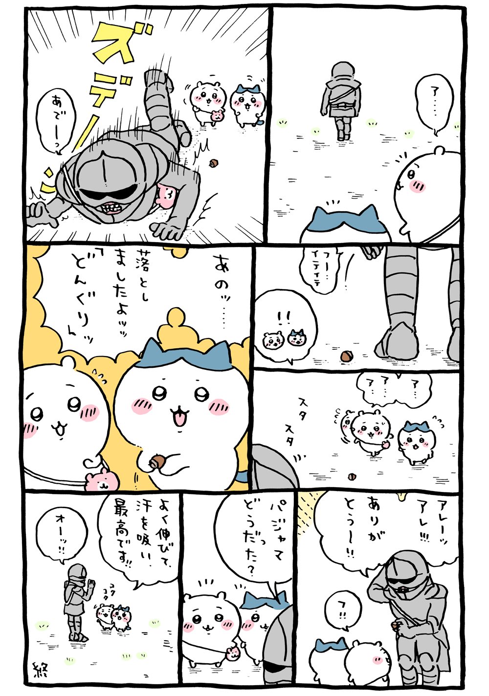 勇気を出してパジャマのこと話してみたちいかわ😊鎧さんの話で盛り上がってるみたいです!