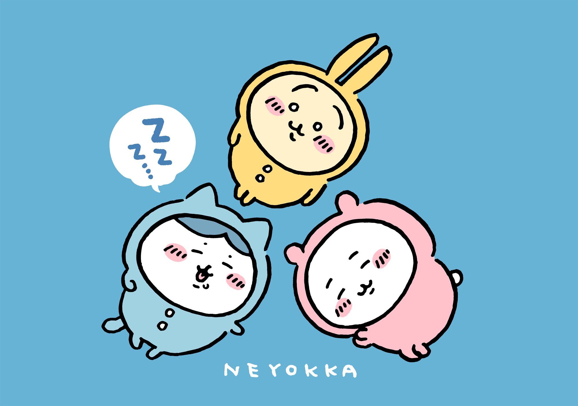 ちいかわの家で遊んでいる場面でしょうか?3人ともパジャマ姿です😊