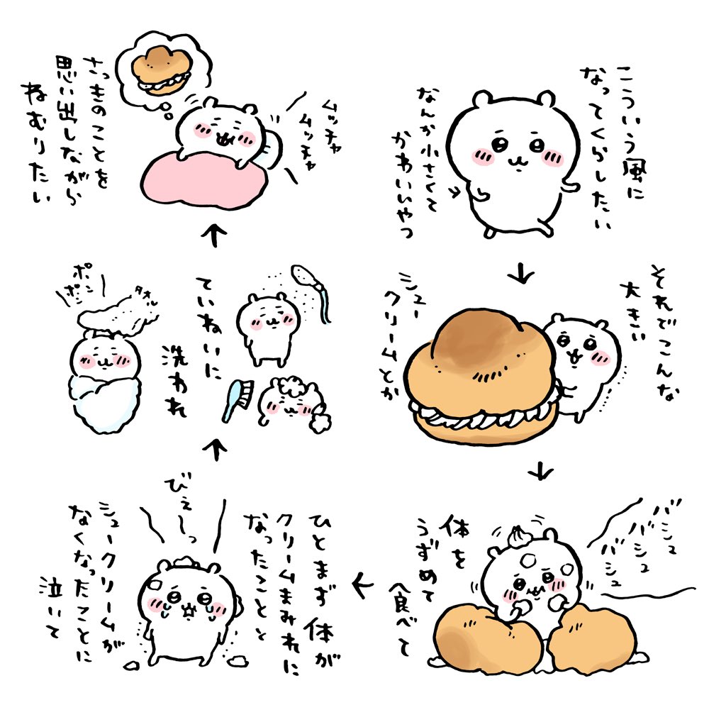 「かためのプリン」の時もそうでしたが、ちいかわは身体が汚れるのが苦手みたいです😉