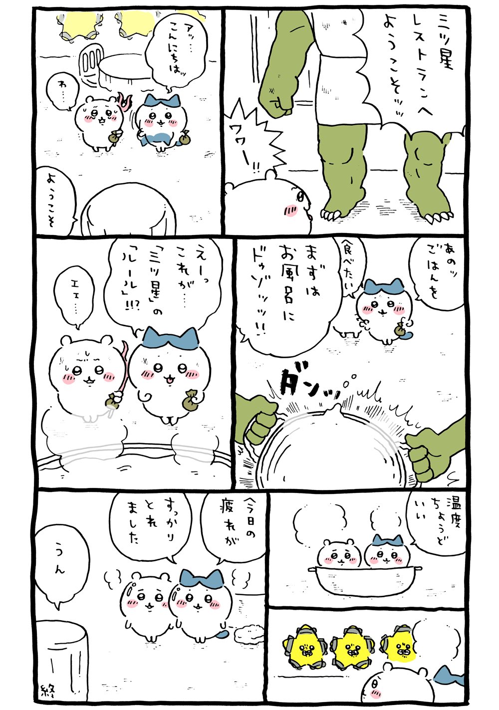 打って変わって、ほのぼの回ではないんですが、鍋で綺麗にされたちいかわとハチワレ。