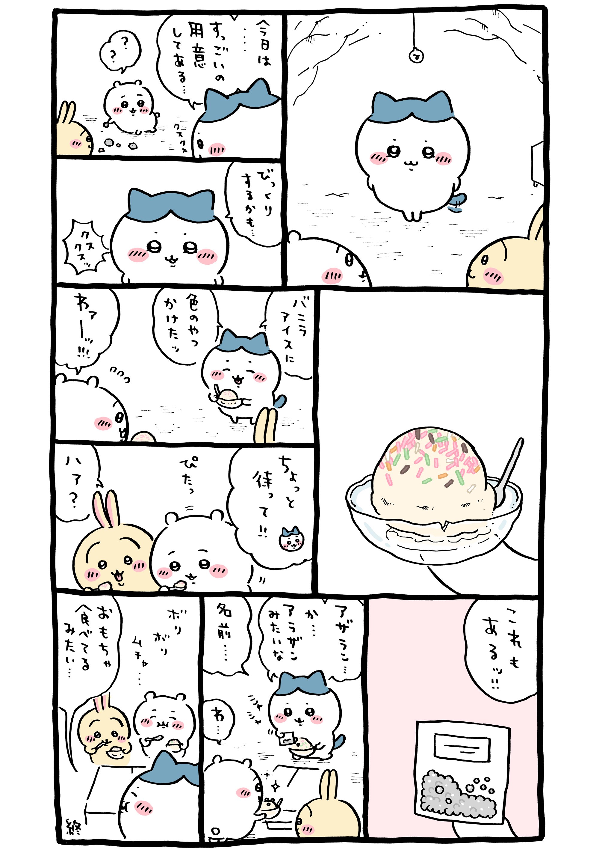 しっぽが動いたり、カタカタ震えたり、すっごいのをちいかわとうさぎに披露できる喜びを隠しきれていませんでしたね😊ハチワレのおもてなしの心は本当素敵です✨